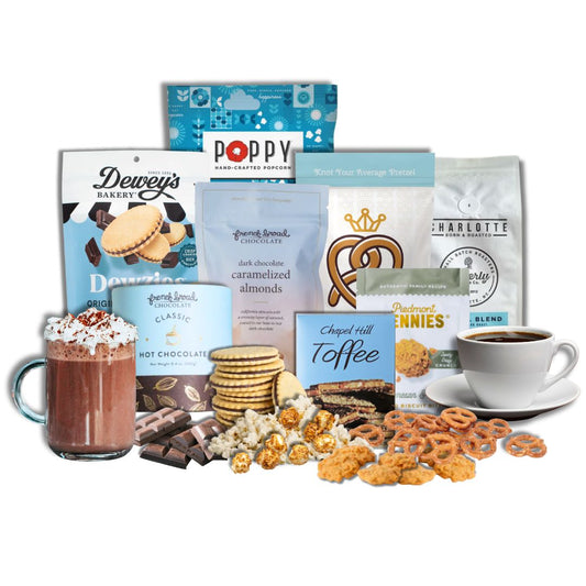Explore our latest gift baskets and boxes, thoughtfully curated with seasonal treats, North Carolina–made favorites, and unique new arrivals for every occasion.